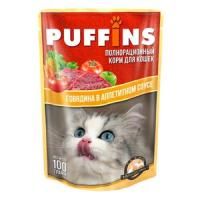 Корм для кошек PUFFINS Пуффинс влажный говядина в аппетитном соусе 100 гр. пауч