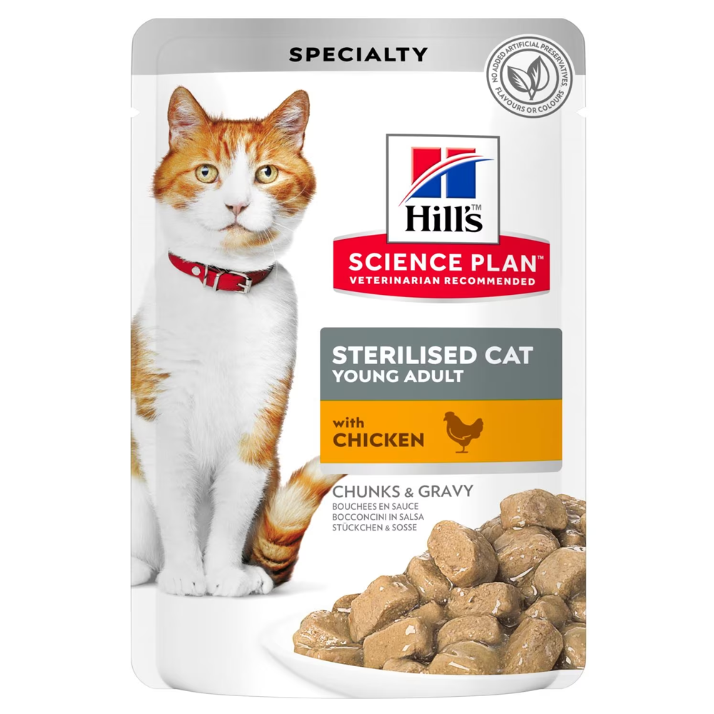 Корм для кошек Hill`s Science Plan Sterilised Хиллс для стерилизованных кусочки в соусе с курицей 85 гр. пауч*