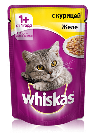 Консервированный корм Whiskas "Желе с курицей"- полнорационный корм эконом-класса, предназначенный для взрослых кошек с 1 года до 7 лет. В состав корма входят все питательные вещества,витамины и минералы,необходимые для сбалансированного питания Вашей кошки каждый день.Без красителей и консервантов.