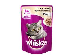 Корм для кошек Whiskas Вискас влажный рагу с курицей в кремовом соусе 85 гр. пауч