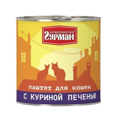 Четвероногий гурман "Паштет" -это консервированный корм с куриной печенью для взрослых кошек. Специальная щадящая технология обработки компонентов позволяет сохранить максимальное количество витаминов, микроэлементов и питательных веществ, необходимых в период роста котёнку. Корм производится из высококачественного натурального мяса, без добавления сои, ароматизаторов и красителей, имеет отличный вкус и привлекательный аромат.
