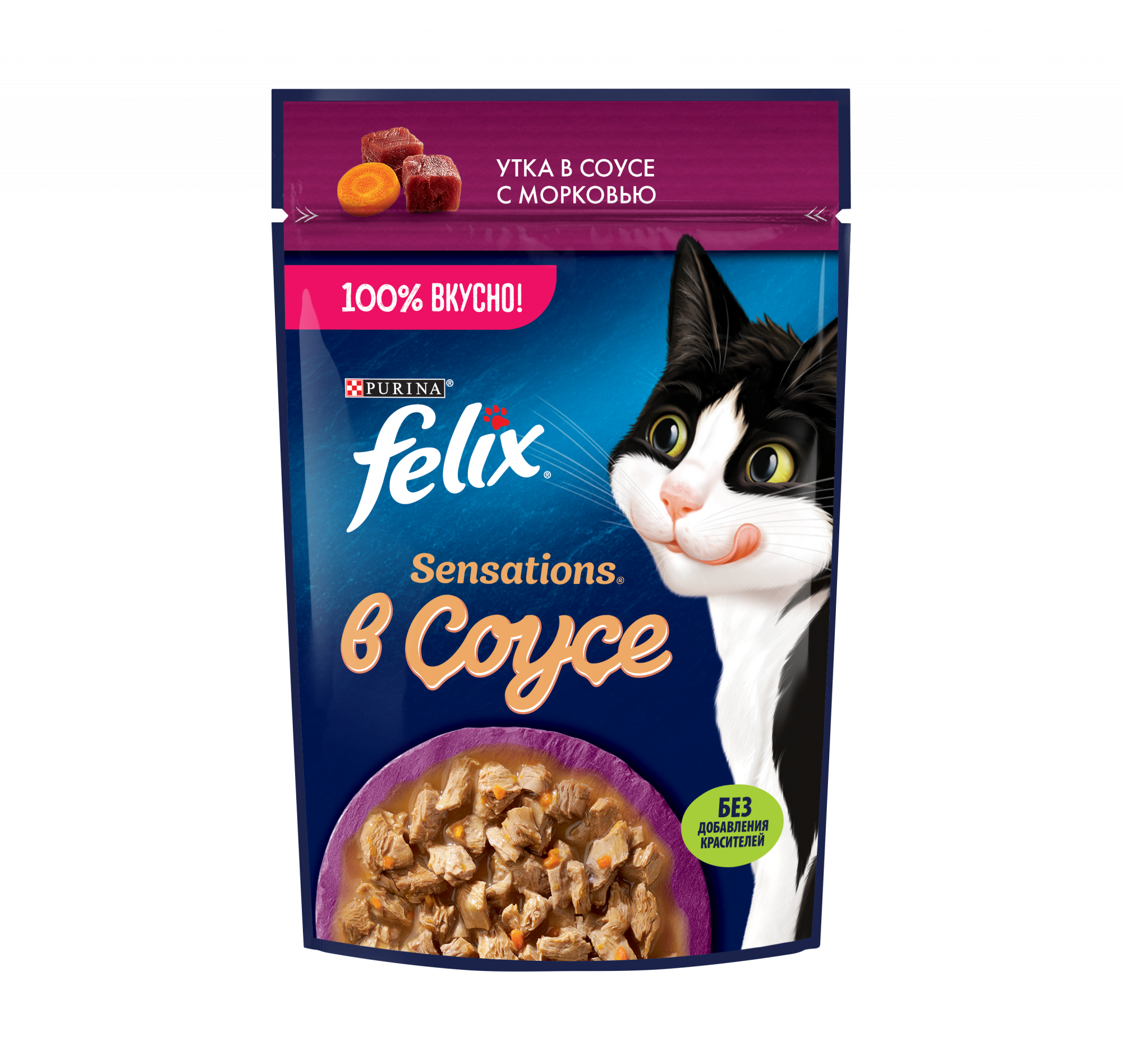 Корм для кошек Felix Sensations Феликс Сенсейшн с уткой и морковью в соусе 75 г пауч**