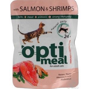 Корм для кошек Optimeal Оптимил влажный лосось, креветки соусе 85 гр. пауч