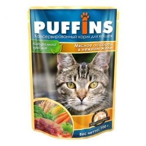 Корм для кошек PUFFINS Пуффинс влажный мясное ассорти в нежном желе 100 гр. пауч