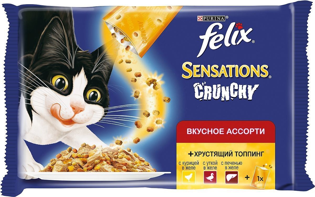 Корм для кошек Felix SENSATIONS Феликс с топпингом 3 шт.х 85 гр. пауч