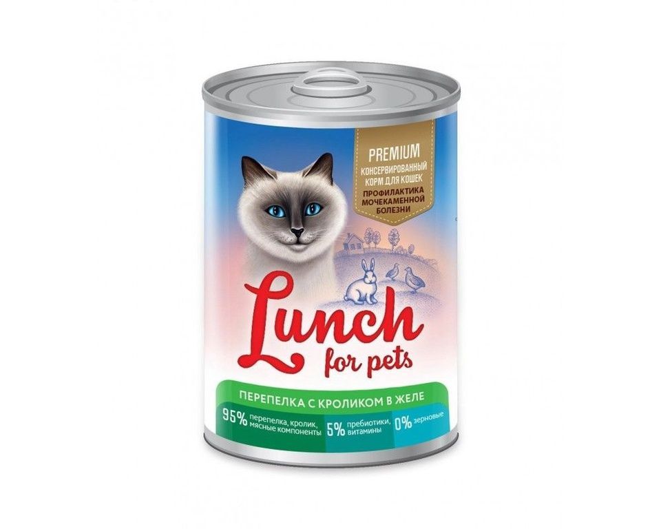 Корм для кошек Lunch for pets Ланч фо петс конс. перепелка с кроликом кусочки в желе 400 г ж/б*