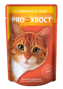 Корм для кошек PRO ХВОСТ Прохвост влажный с индейкой в соусе 100 гр. пауч