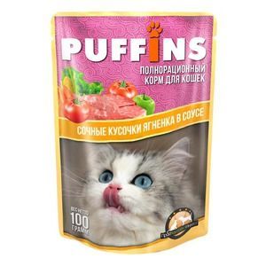 Корм для кошек PUFFINS Пуффинс влажный сочные кусочки ягненка в соусе 100 гр. пауч
