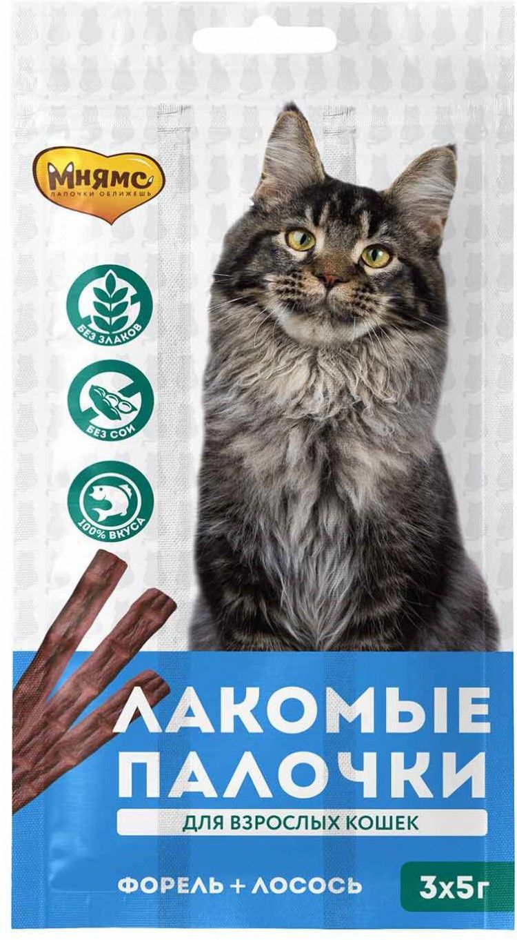 Мнямс д/к Лакомые палочки 13,5 см с форелью и лососем 3х5 г