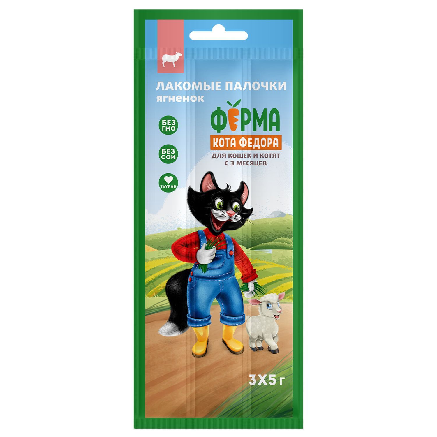 Ферма кота Федора лакомые палочки для кошек и котят из ягненка 3 х 5 г