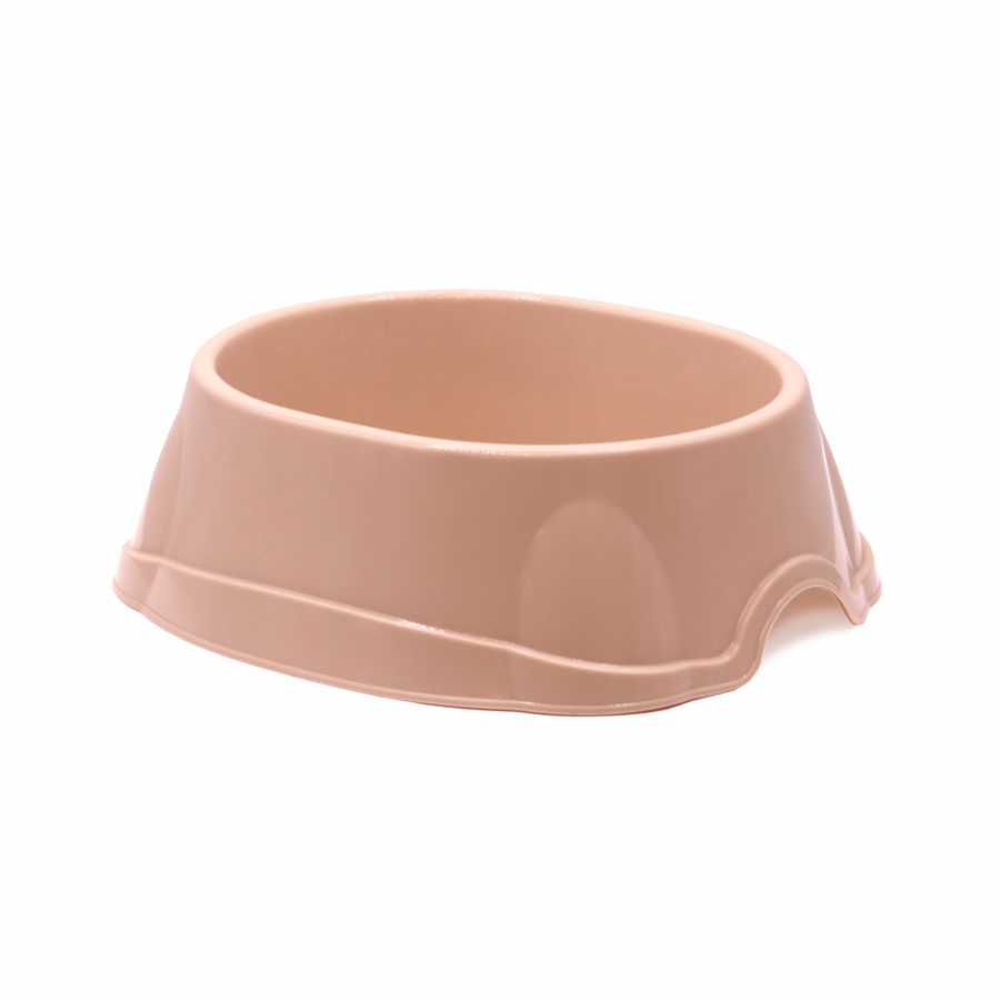 Удобная миска для питомцев в ярком цвете выполнена из прочного и качественного пластика. Материал не впитывает запахи и с легкостью отмывается проточной водой. Для большего удобства подъема и перемещения на миске есть специальная выемка под руку.
