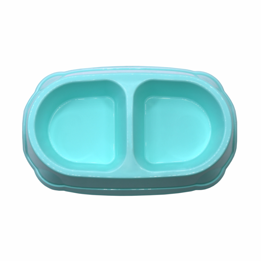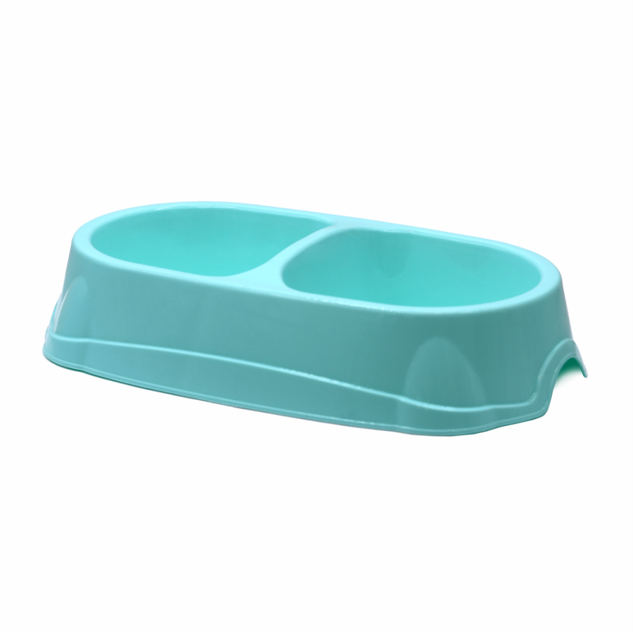 Двойная миска для питомцев выполнена в ярком цвете из прочного и качественного пластика. Чаще всего две емкости используются для воды и для корма. Материал не впитывает запахи и с легкостью отмывается проточной водой. Для большего удобства подъема и перемещения на миске есть специальная выемка под руку.