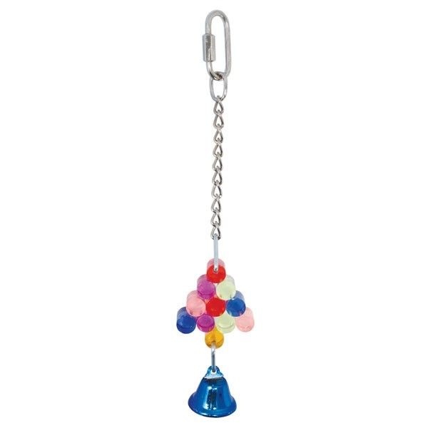 Оригинальная игрушка-тренажер для птиц на металлической цепочке Triol "Гроздь винограда" в виде разноцветной кисти винограда и колокольчика. Игрушка из акрила проста в уходе, при загрязнении её можно дезинфицировать, и, что немаловажно для поддержания чистоты в клетке, на ней не размножаются бактерии и не оседает пыль. Крепится с помощью карабина. Игрушка порадует пернатого и украсит клетку.