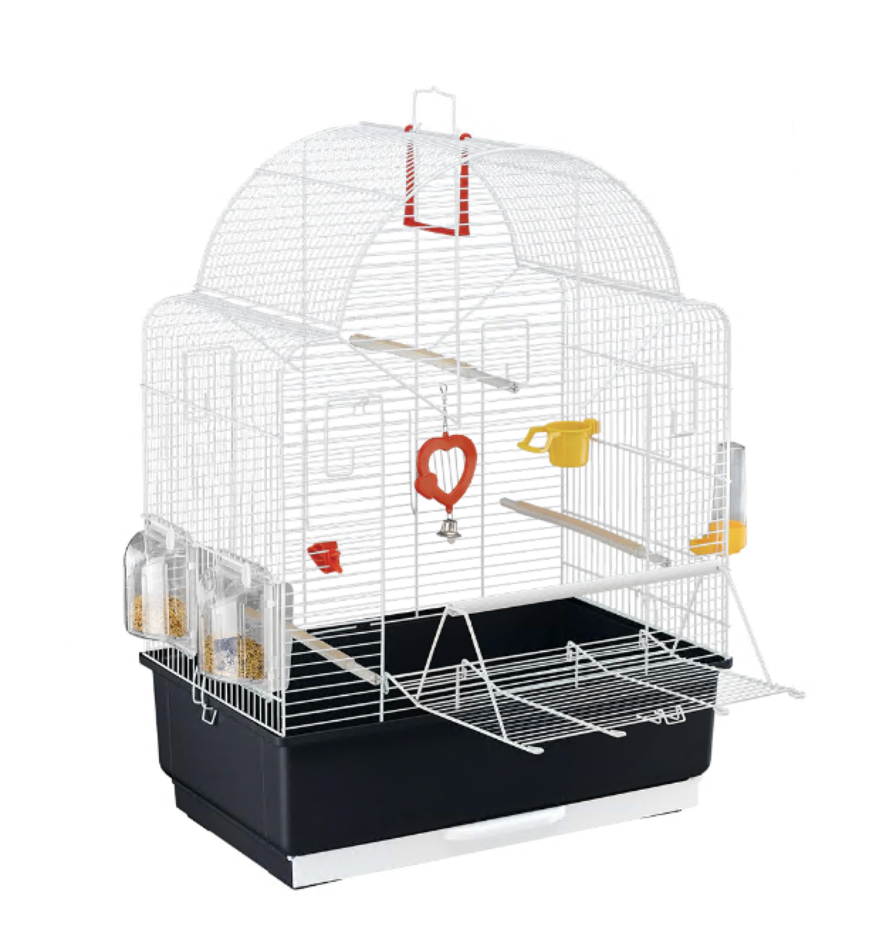 Благодаря клетке Ibiza Open канарейки и экзотические птицы смогут насладиться моментами свободы: клетка имеет прямоугольный поддон и оборудована передней полностью открывающейся дверкой с жердочкой. Особенно удобна эта дверка для ежедневной уборки или если вы хотите угостить ваших питомцев свежими овощами.