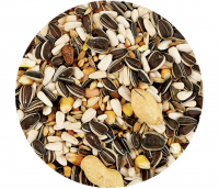 Состав: полосатое семя подсолнечника 25%, белое семя подсолнечника 20%, кукуруза 7%, пшеница 6%, сафлор 5%, очищенный арахис 5%, овес 5%, гречиха 5%, рис-сырец 4%, цельный арахис 4%, сорго 3%, конопляное семя 3%, очищенный овес 3%, кедровые орехи 2%, воздушная кукуруза 2%, семена тыквы 1%.
