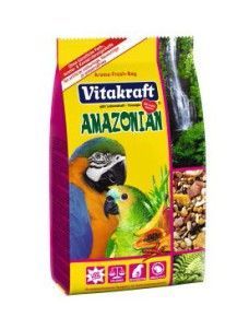 Корм Vitakraft Amazonian для крупных попугаев – это рацион ежедневного питания, максимально соответствующий разнообразному питанию пернатого на своей экзотической родине. Он содержит только натуральные продукты, которые необходимы для активной жизни птицы. Производитель позаботился о том, чтобы в составе зерновой смеси было все необходимое для здоровья Вашего крылатого питомца: яичный желток, минералы, микроэлементы и витамины, в том числе такие значимые элементы, как витамин А, необходимый для хорошего оперения, кальций и фосфор, которые требуются для костей.