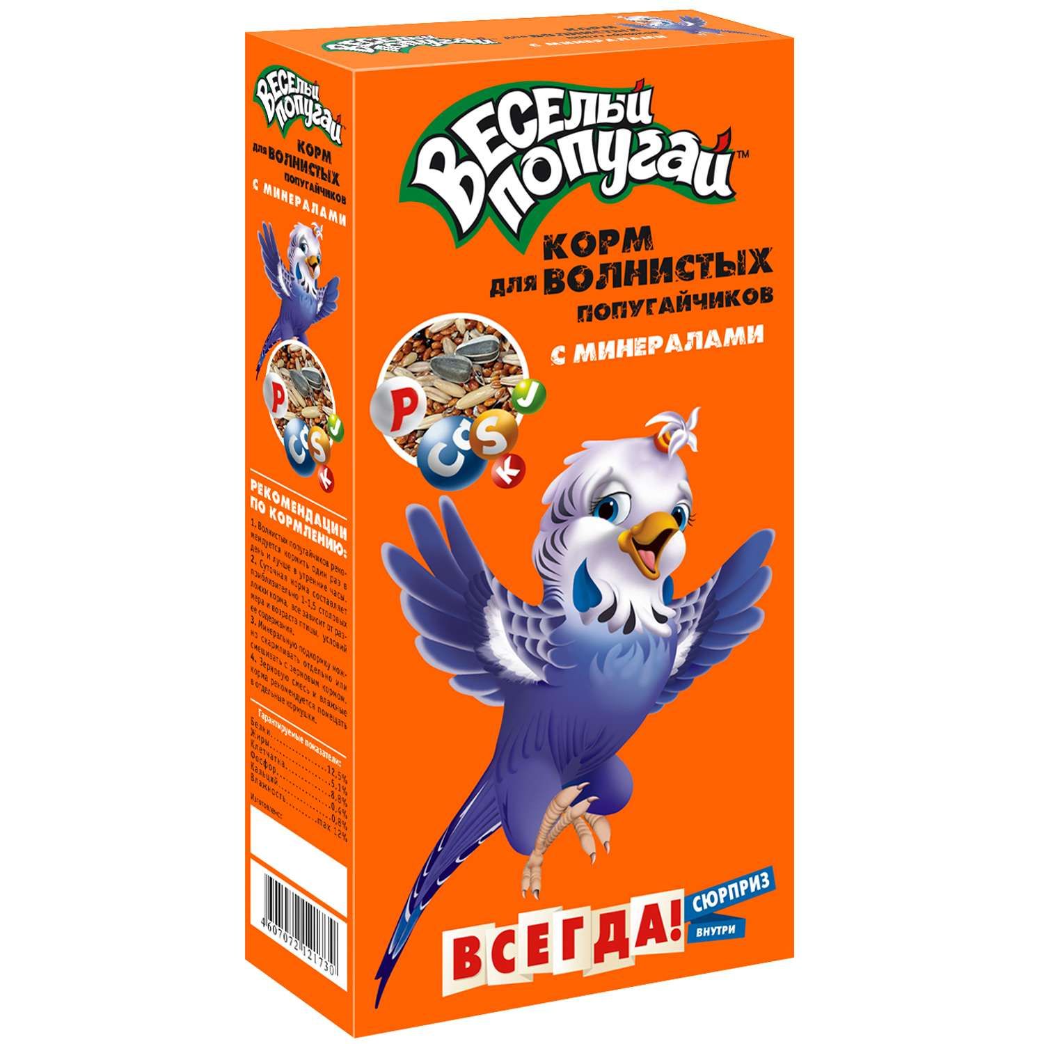 Корм для волнистых попугаев Зоомир Веселый попугай с минералами 450 гр.