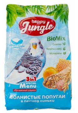 -Корм для волнистых попугаев Happy Jungle при линьке 500 гр.