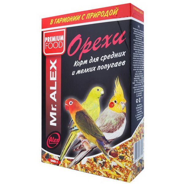 Корм для средних и мелких попугаев МИСТЕР АЛЕКС Орех 500 г