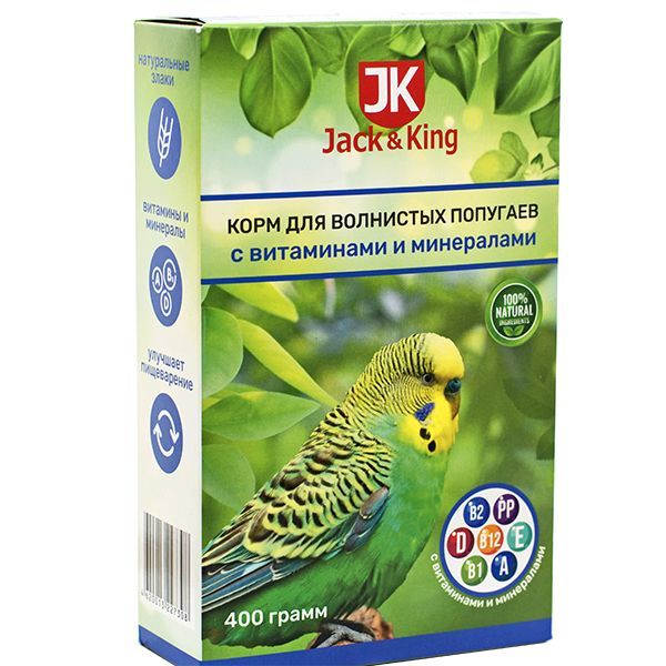 -Корм для волнистых попугаев Jack&King с витаминами и минералами 400 г