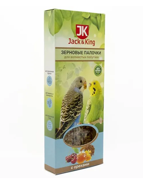 Jack&King Зерновые палочки для волнистых попугаев с орехами, 3шт 90 гр.
