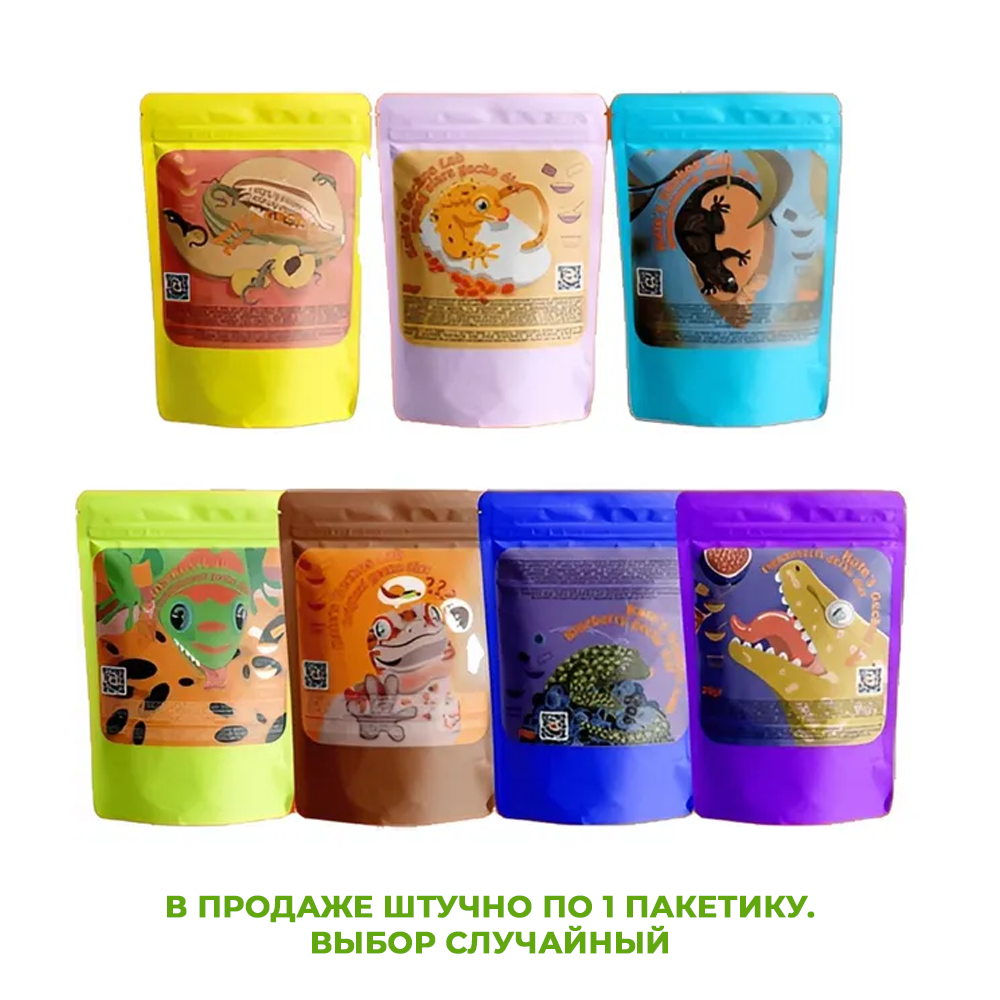 Полнорационные корма от Kate’s Geckos Lab для фруктоядных рептилий в индивидуальных упаковках по 20 г.