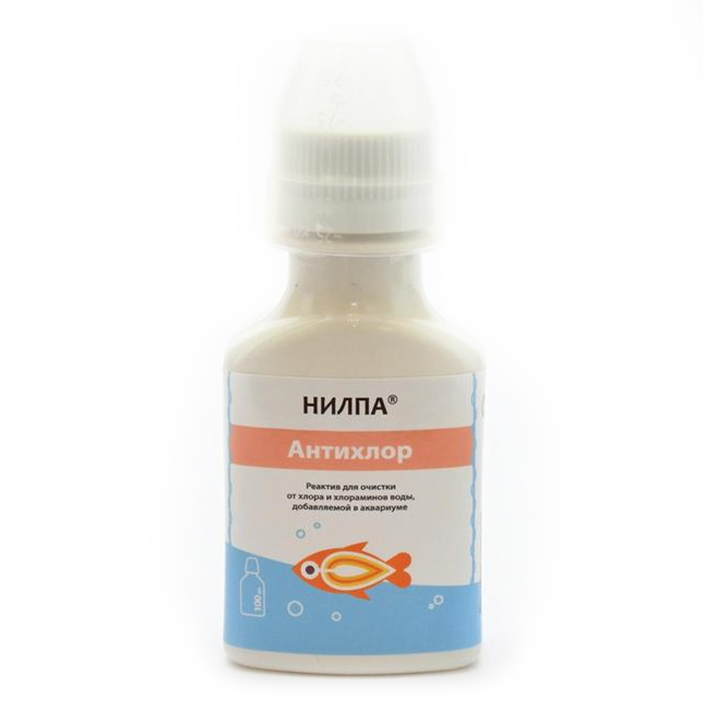 Реактив «НИЛПА Антихлор» предназначен для очистки водопроводной воды, добавляемой в аквариум, от хлора и хлораминов. Часть вредных веществ попадает в аквариум с водопроводной водой. Наиболее опасным из них является хлор. Его повышенные концентрации приводят к гибели обитателей аквариума. Регулярное применение специального реактива «НИЛПА Антихлор» при использовании свежей водопроводной воды не наносит ущерба рыбам и растениям. Реактив представляет собой бесцветную прозрачную жидкость, не содержащую посторонних включений.