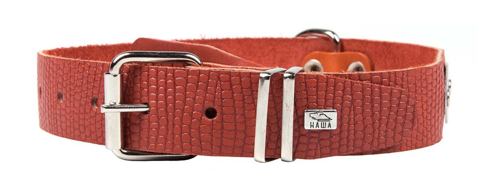 Ошейник для собак Наша Ручная работа 35 рептилия средний "Адресная бирка" 54-66 см*35 мм кожа**