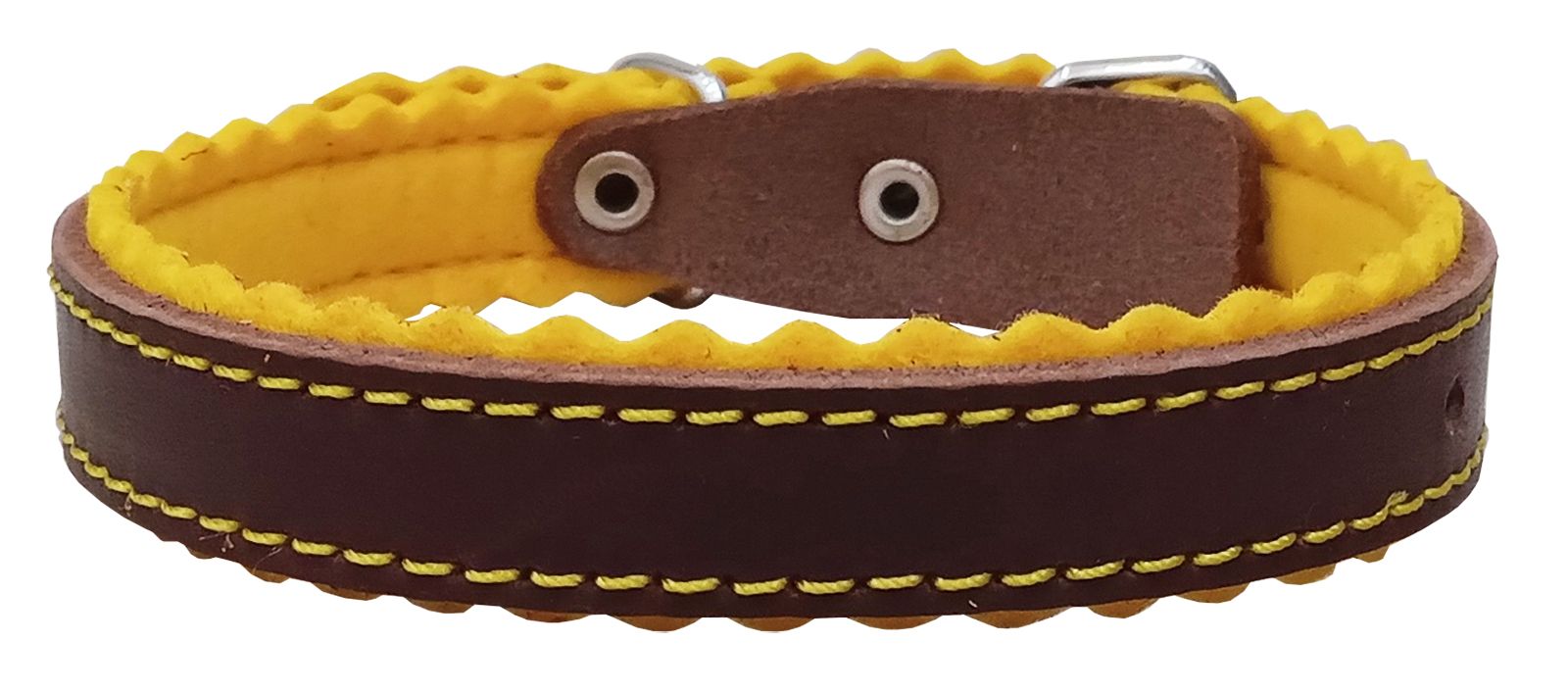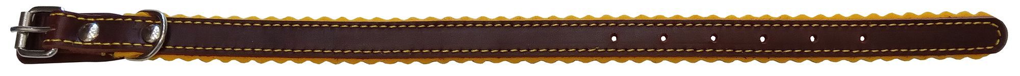 Однослойный ошейник из натуральной кожи, подшитый фетром, украшенный декоративными зубчиками и строчкой, полукольцо у пряжки.