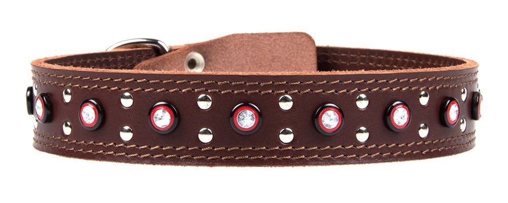 Ошейник для собак Наша Ручная работа 35/2 средний стразы 54-68 см*35 мм кожа**