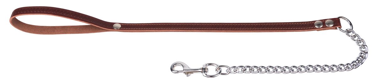 Поводок двухслойный из натуральной кожи с металлической цепочкой, прошитый.