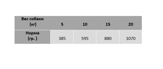 Энергетическая ценность: 1 120 ккал/кг.
