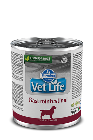 Farmina Vet Life Gastrointestinal - полнорационный диетический влажный корм для собак, рекомендуемый для лечения синдрома нарушения всасывания и переваривания пищи в ЖКТ, при экзокринной недостаточности поджелудочной железы. Farmina Vet Life Gastrointestinal также рекомендован для кормления собак в период реабилитации после хирургических операций на органах пищеварения.
