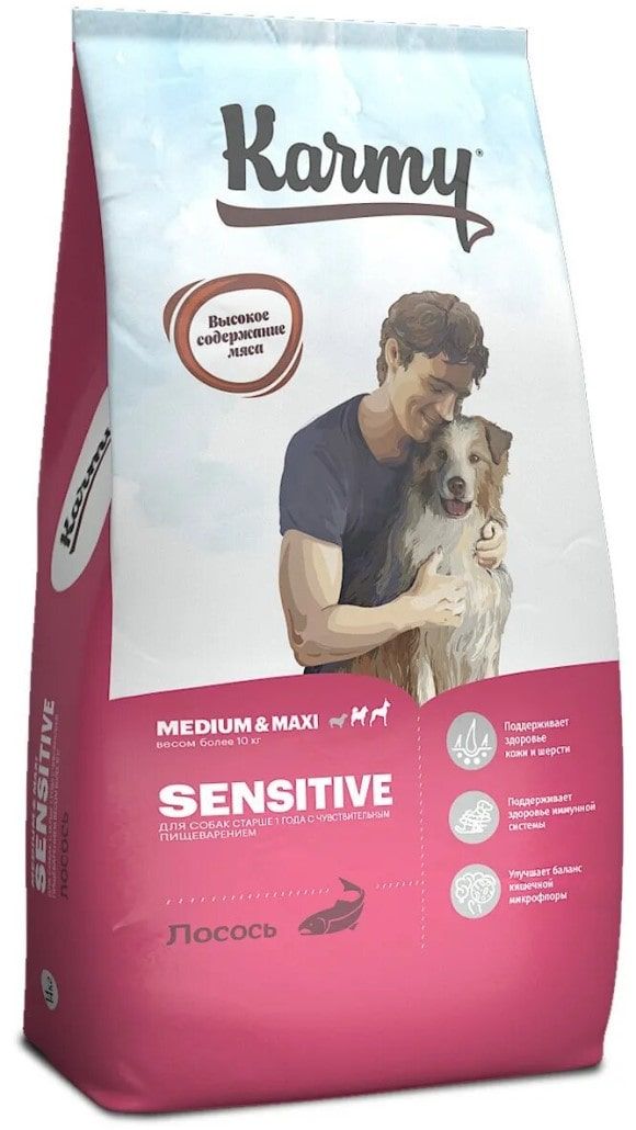 Корм для собак Karmy Medium&Maxi Sensitive Карми для средних и крупных пород с чувствительным пищеварением лосось 14 кг сух. мешок**