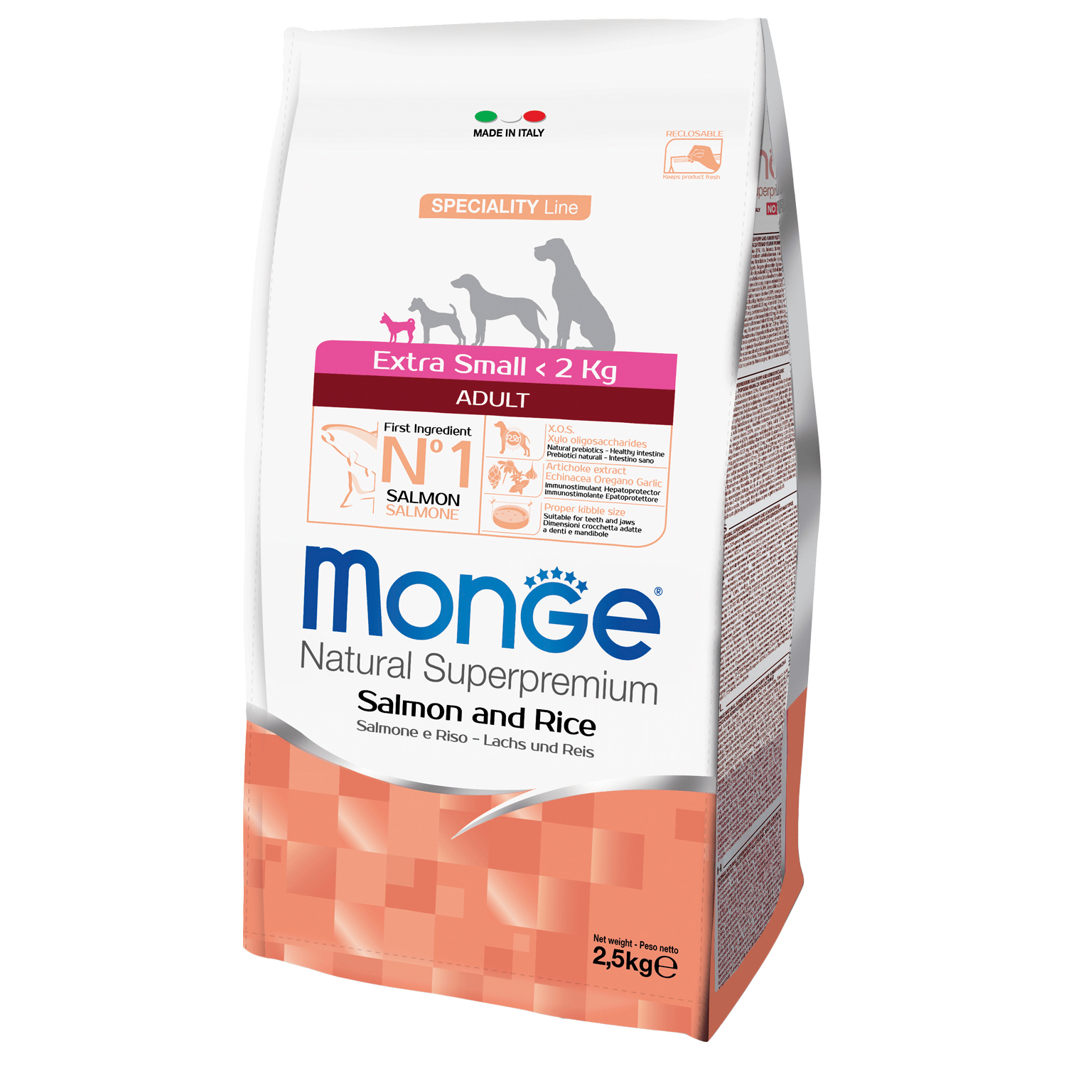 Monge (Монж) Dog Speciality Line Monoprotein Extra Small сухой корм из мяса лосося с рисом для взрослых собак миниатюрных пород 2,5 кг.