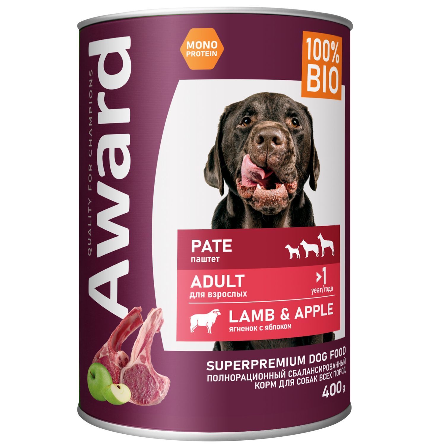 AWARD д/с 400 гр. конс. паштет из ягненка с яблоком