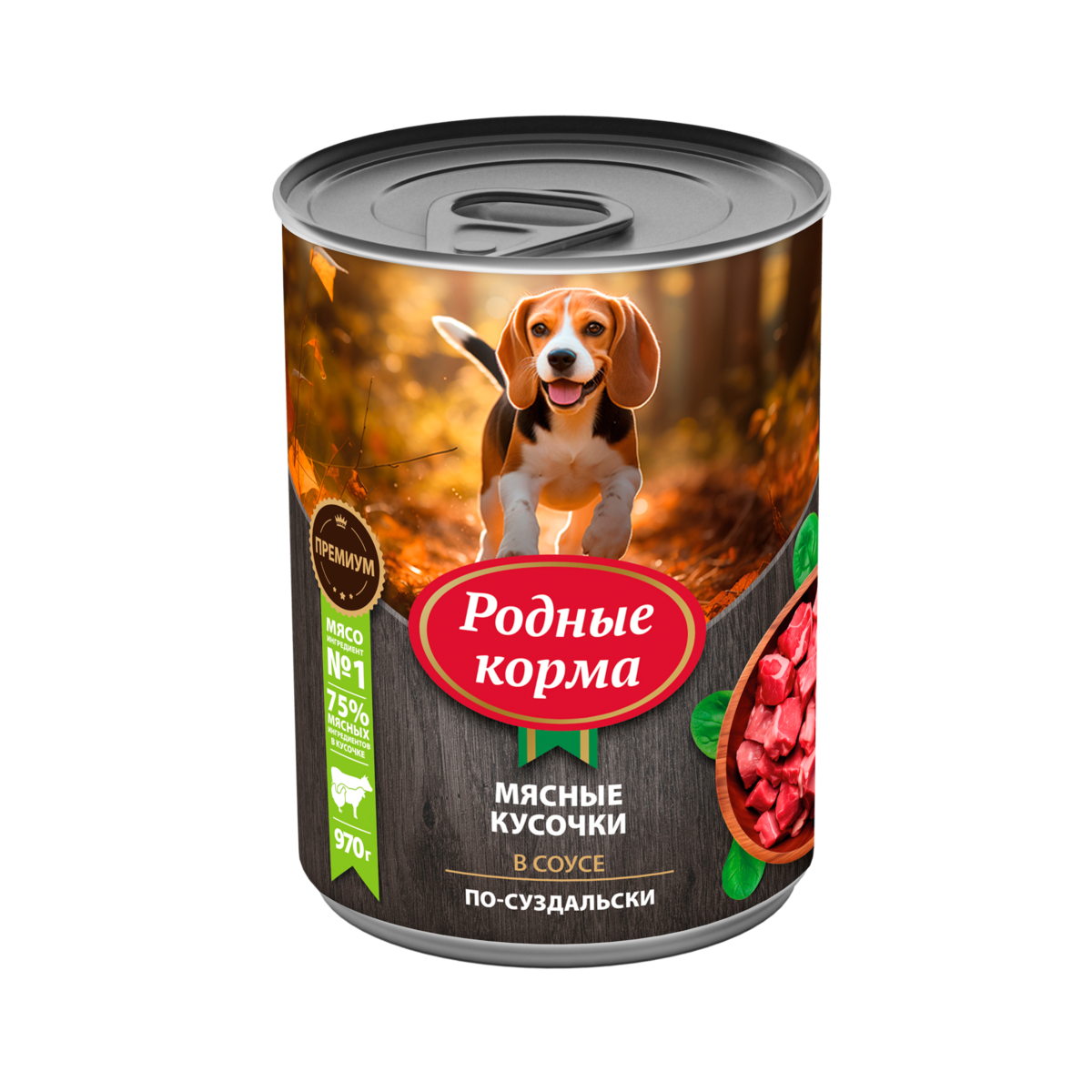 Родные корма д/с мясные кусочки в соусе по-суздальски 970 гр. ж/б