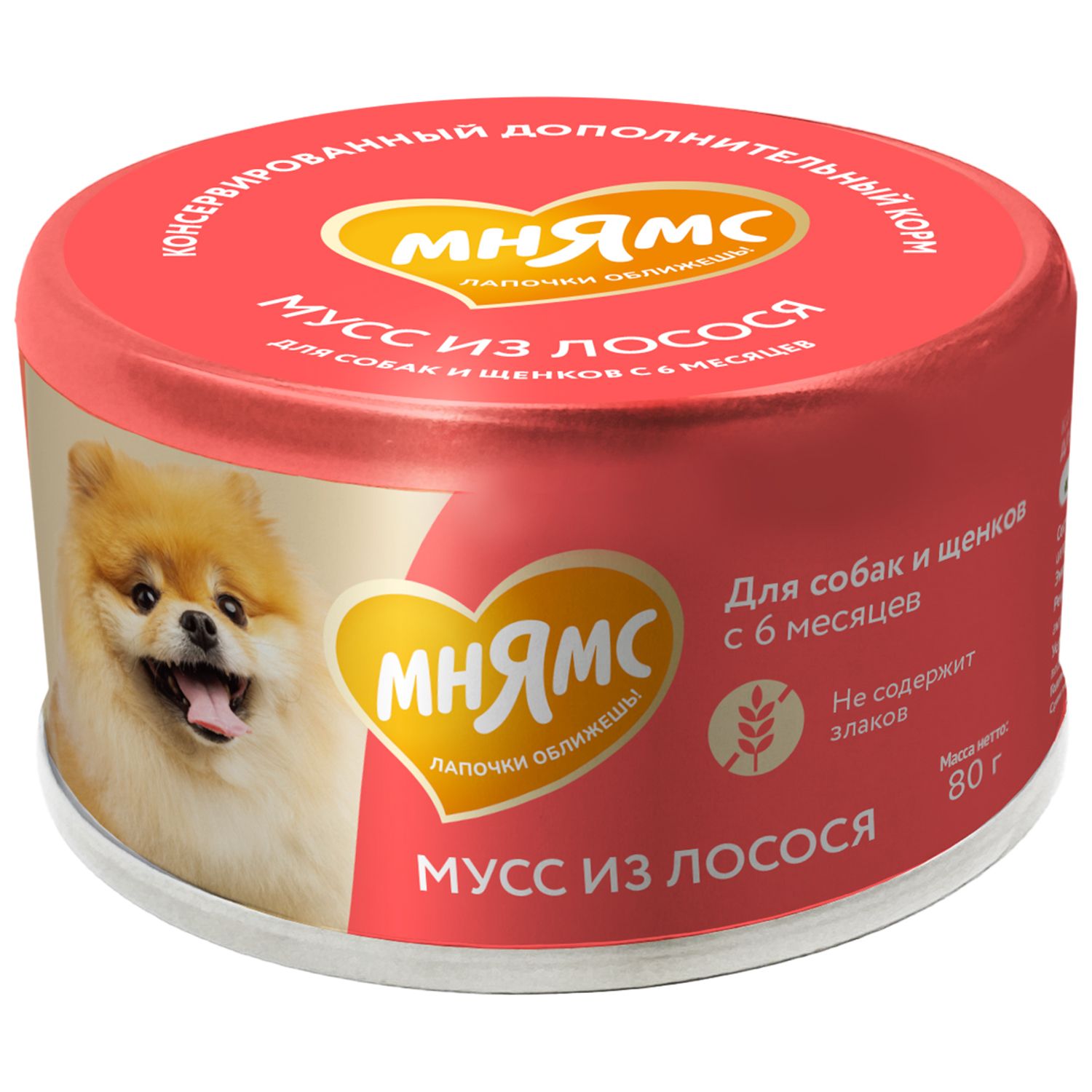 Влажный дополнительный корм Мнямс Мусс из лосося для собак и щенков старше 6 месяцев 80 гр ж/б