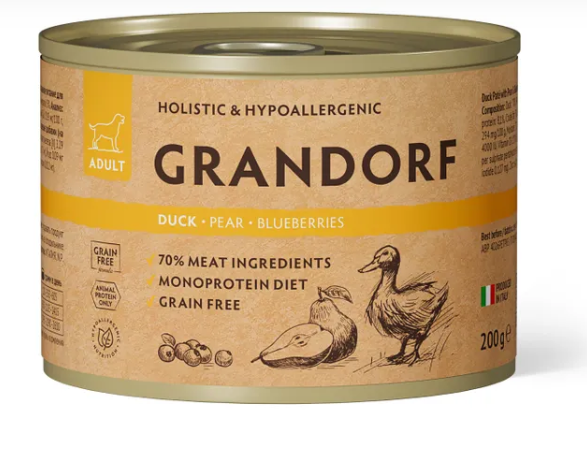 Грандорф д/собак консервы (паштет из утки с грушей и черникой) 200 гр