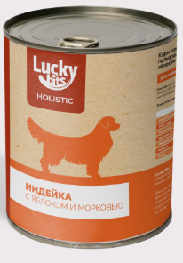 Lucky bits д/с конс. индейка с яблоком и морковью 970 гр