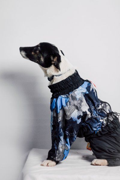 Регулируемая резинка на животе и шее для более плотного прилегания к корпусу собаки (рекомендуется: отрегулировать один раз на талии собаки и завязать узел). На рукавах манжет для плотного прилегания к лапе. Светоотражающие элементы: кант вдоль спины и полоска на шее.
